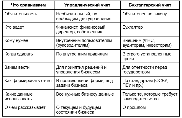 ● Бухучет — обязательный, управленческий — жизненно необходимый.